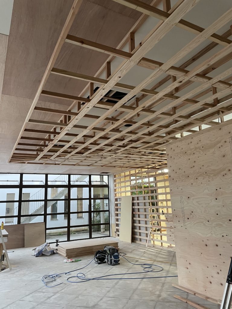 そしてカウンター上部には代表の提案で吊り天井を作っていきます!
